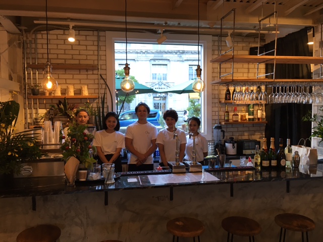 自分達で塗料と汗でビチョビチョになりながら塗った木板、いつ終わるとも分からないで貼り続けたタイル。店内の木製アンティークのシャンデリア等々、古い建物をリノベーションした、とても素敵なインテリアのお店です。