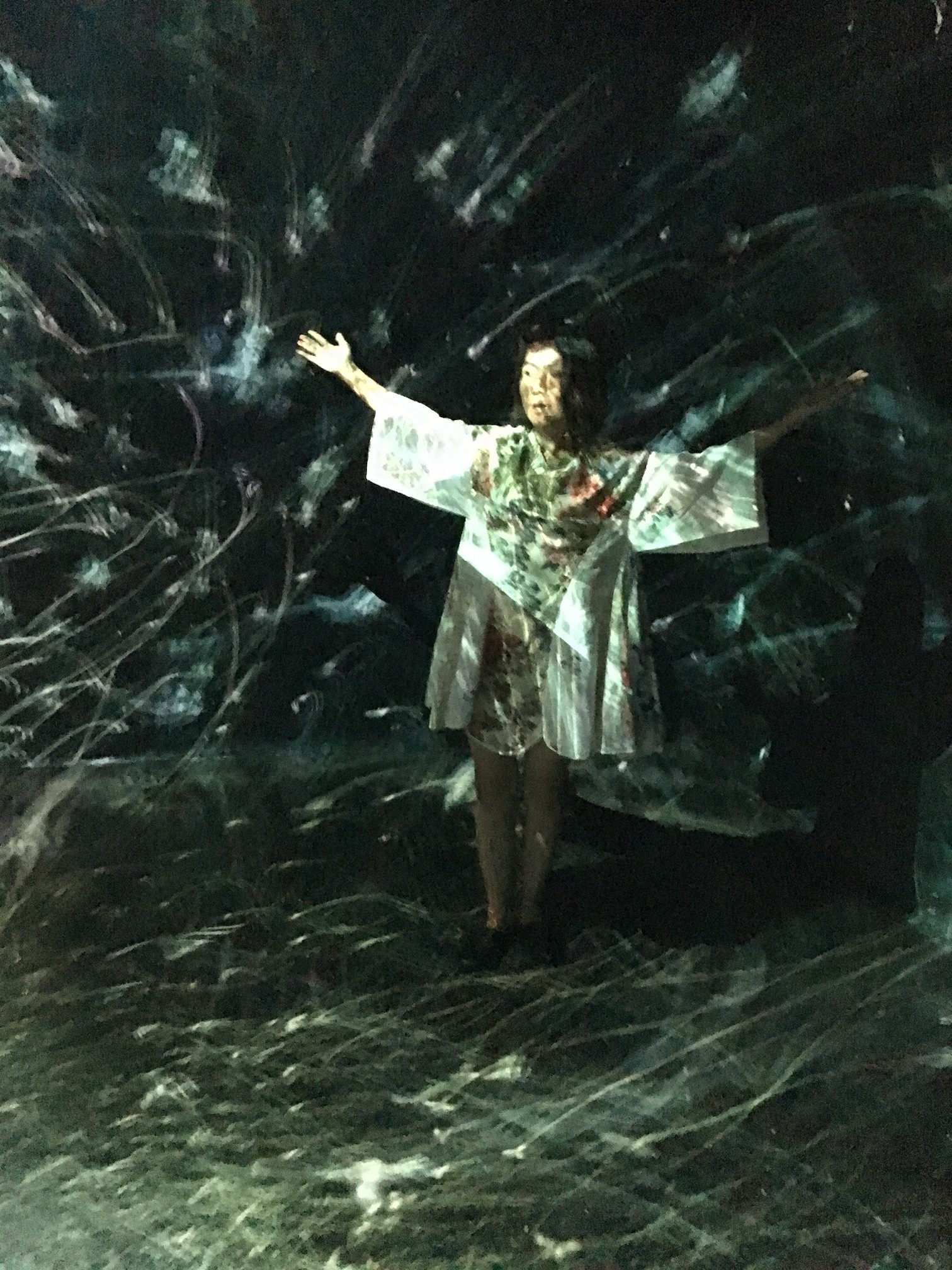 永平寺は曹洞宗の修練道場で160人ぐらいの御坊うさんが修行をしているとか、山の中の荘厳な雰囲気漂うおてらですが、ここでチームラボのインスタレーションがあるというからどんなシチュエーションになるんだろうと期待ワクワクで旅行を計画したのですが、永平寺であるというのは早とちりで永平寺町の町の観光案内のようなところでした。4-5m四方の小さいスペースでしかもどうしてここでチームラボのインスタレーション?人を呼ぶため?などチームラボの人気に乗っかったイベント?などここでする意味がないとは思いましたが。プロジェクションマッピングは面白かった。鳥の群像がテーマで、鳥の集団が一つとして同じ動きがなく、壁と床の空間を動き回るのです。人がそこに立つとその動きを感知して動いているの?とおもわれるような線と点の動きと流れには驚き神秘的で荘厳な感じすらします。