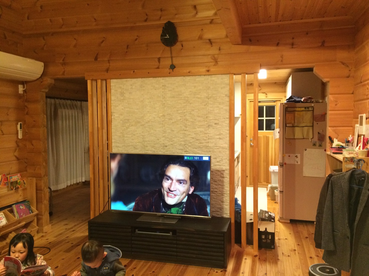 キッチンの方向もかえてしまっています。下の壁は取り払ってテレビは反対の階段側へ。その下を収納にし壁を作ってテレビを壁掛けで設置。AV機器は階段のしたへ。この部分はお子さんのおもちゃなどの収納になります。