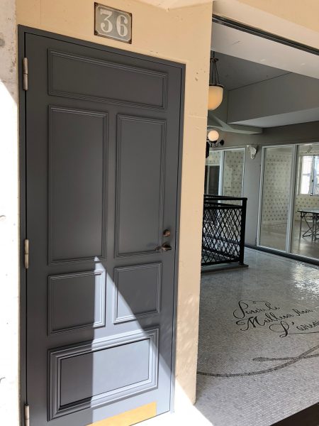 ちょっとした扉にも工夫が!モールディング仕様でグレーに塗装。デザインの大切さを改めて実感します。スタッフさんにご説明を受け、製作の裏側情報などとっても勉強になりました。