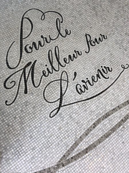 このタイル!!全て職人さんの手作業による傑作です。3階の共用部は全てモザイクタイル張りです。
