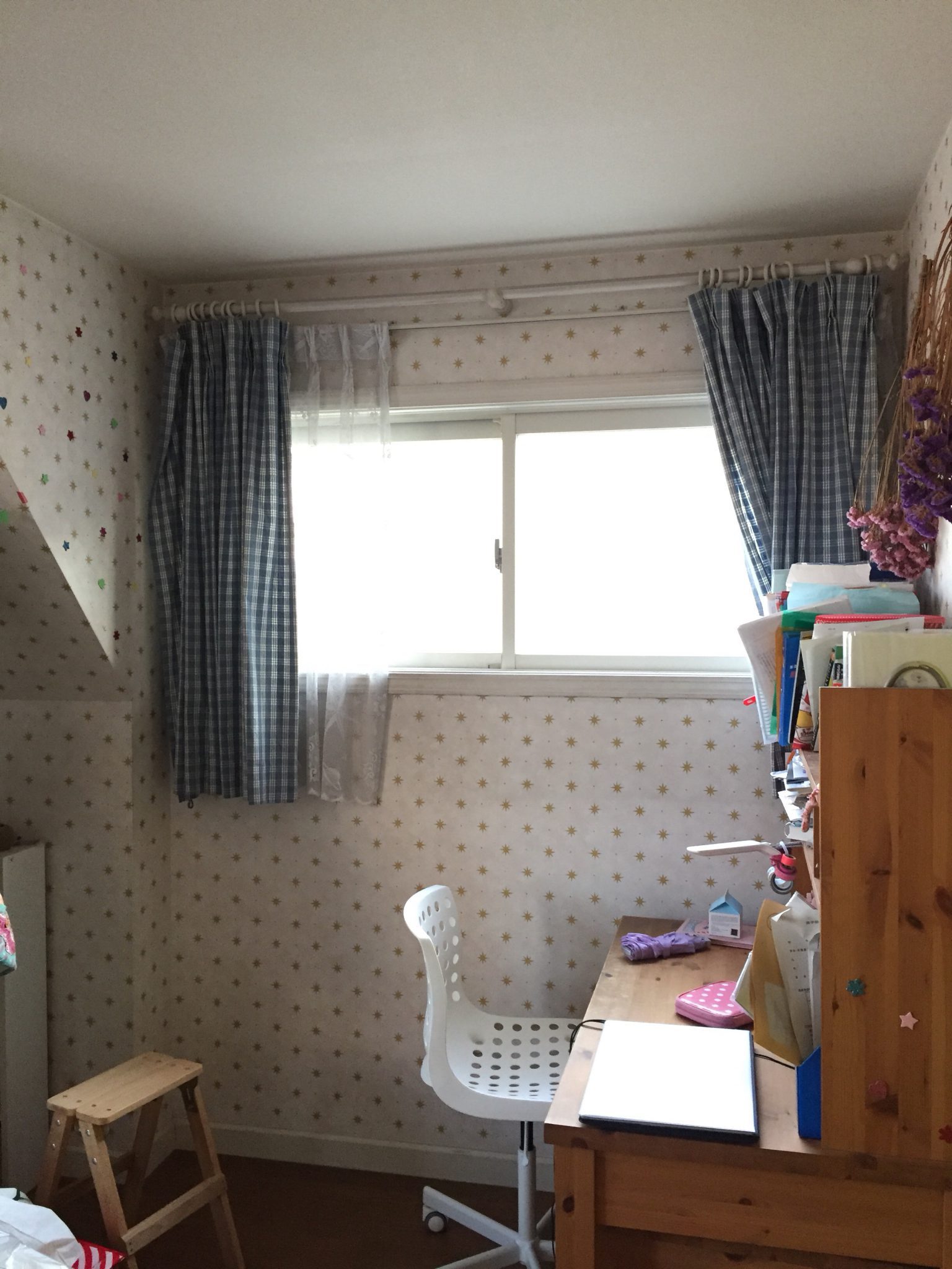 ↑ビフォー こちらの写真はお嬢さまのお部屋です。 カーテンを新調させていただきました。 アフター↓