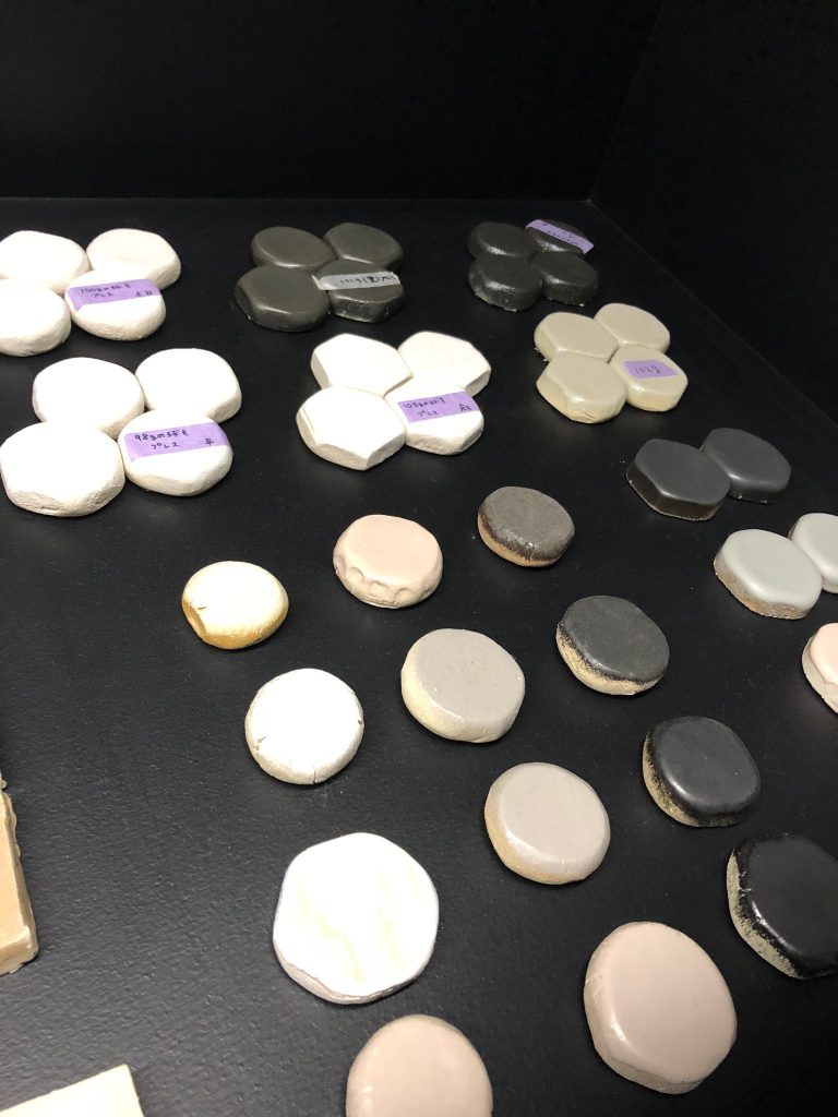 このタイルは先ほど少しご紹介したエクシィズさんとの作品。岐阜・多治見に本社がある老舗タイル会社で、自社でタイルも制作しています。エクシィズさんのタイルは釉薬が特に美しく、1点ずつ表情が違うことも魅力の一つです。