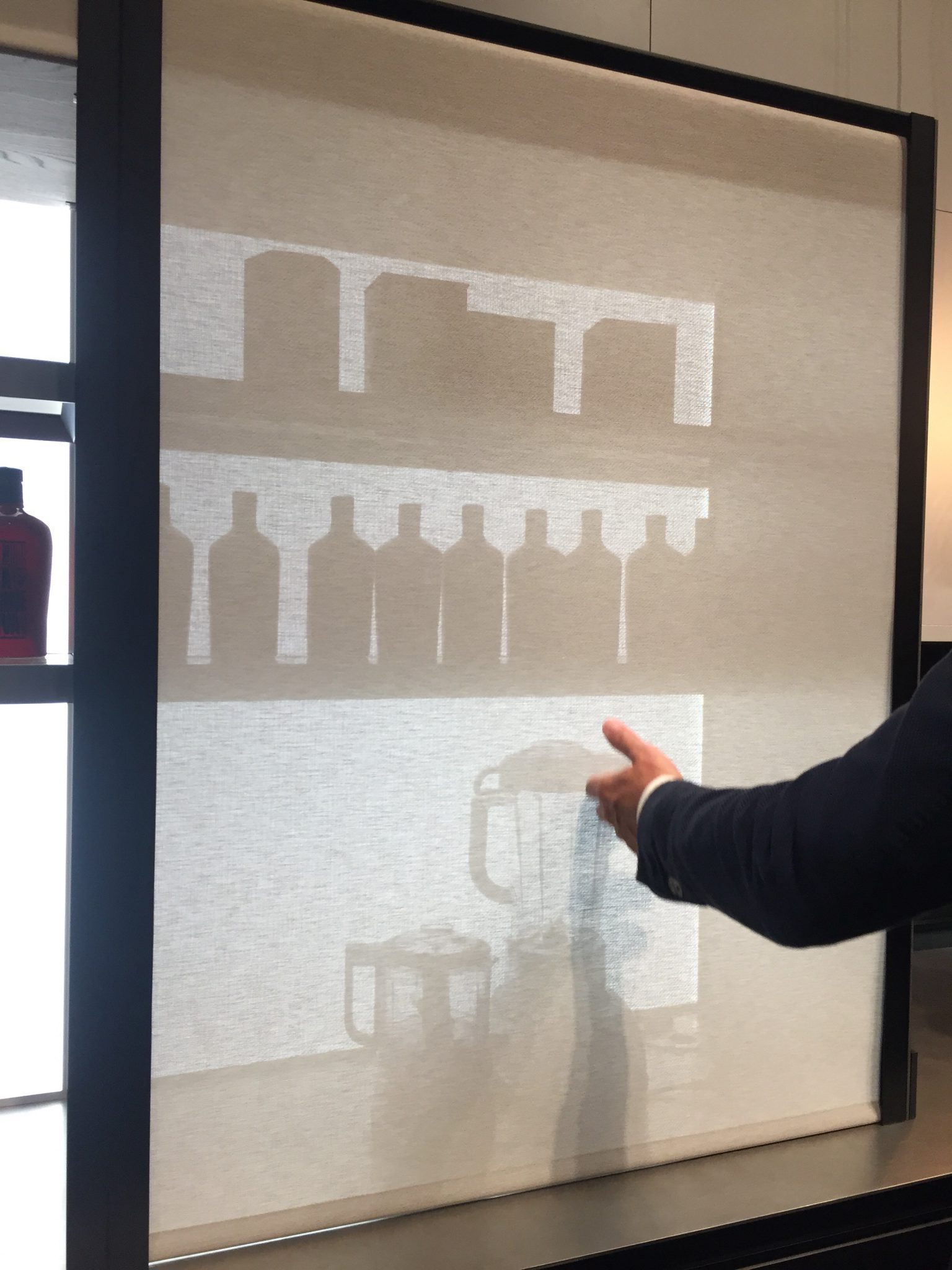 巨大なキッチン。そしてその後ろにあるカップポードの殆どが透明のガラス張りで照明付き。素敵でした〜