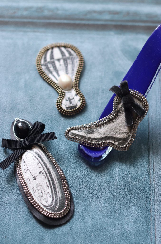 リサブレア・オリジナルのモノクロのクラッシック(Monoclassic)なモチーフを使ってブローチをつくります。