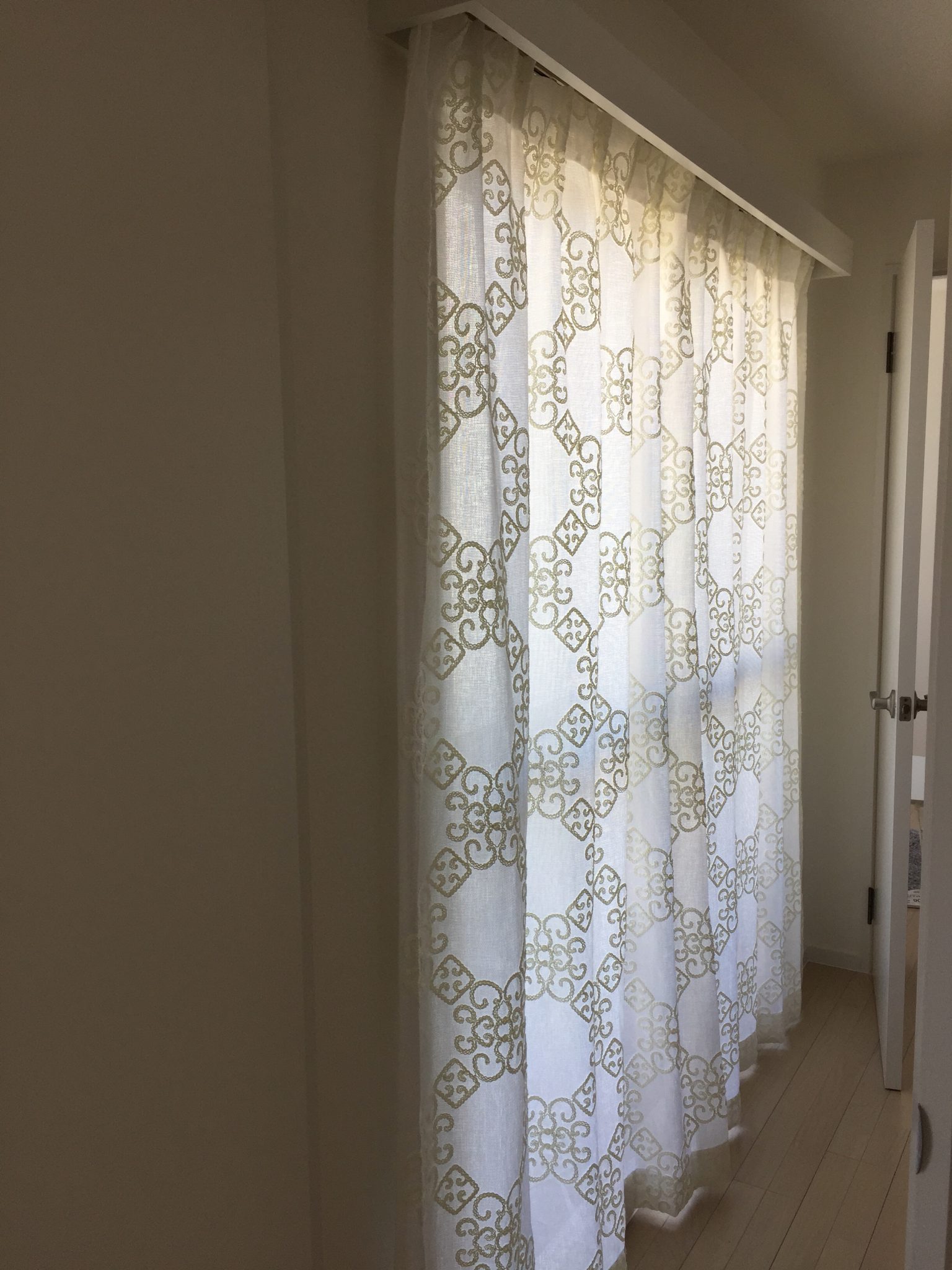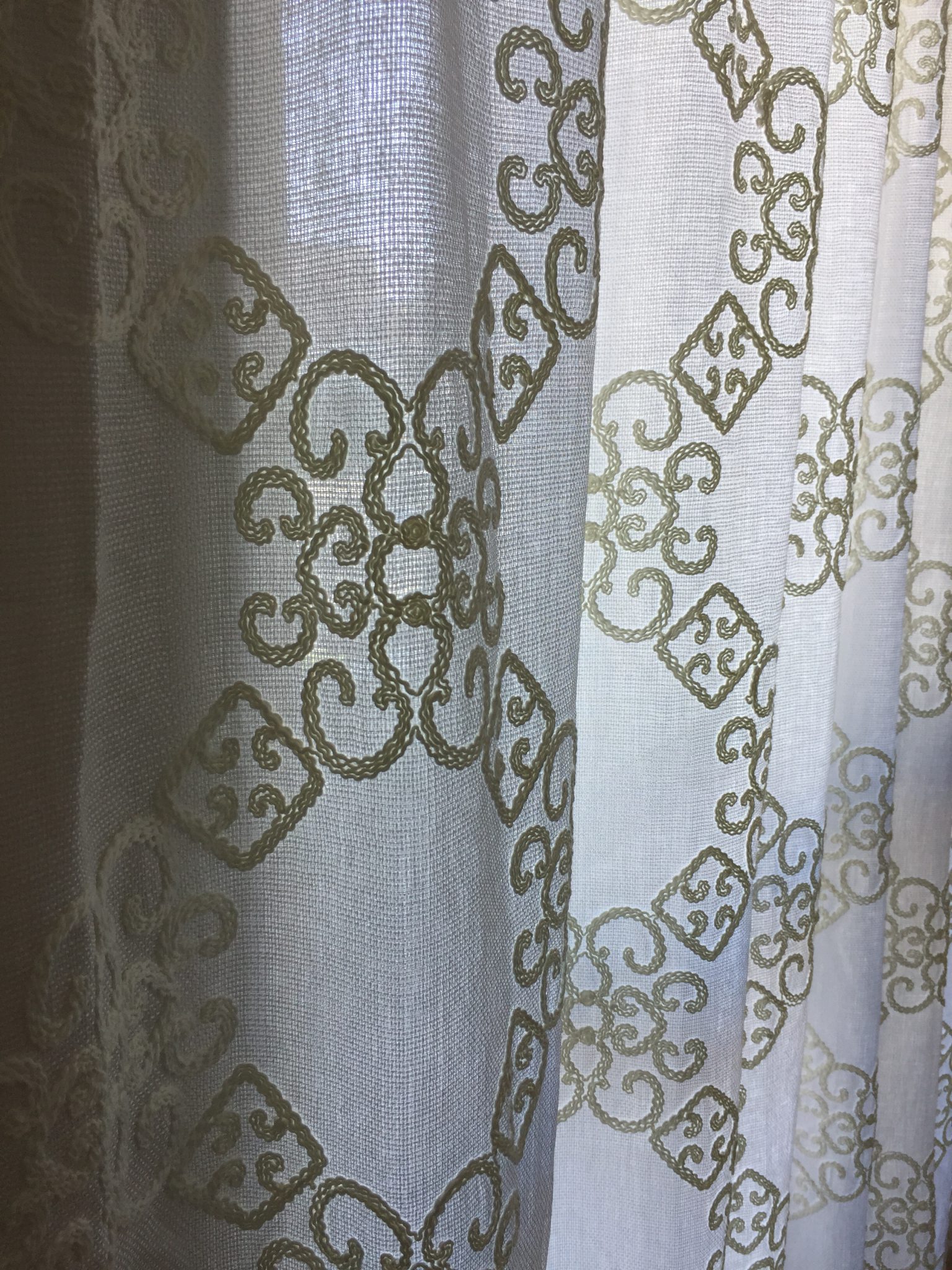 先日納品をさせていただいたお客様のカーテンはRAULELというアメリカのファブリックで白いベースの上に大胆な刺繍の模様が浮き出たナチュラルでどこかエレガントな生地です。
