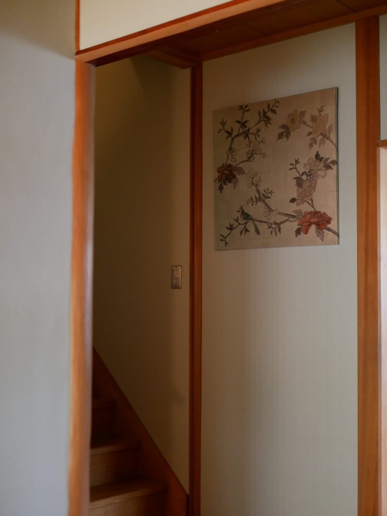 そして玄関を入って正面の壁面にも、サイズ違いのパネルを掛けて頂いてます。当初は洗面所にとのご依頼でしたが、旦那様のご意見でこの場所に決まったそうです。