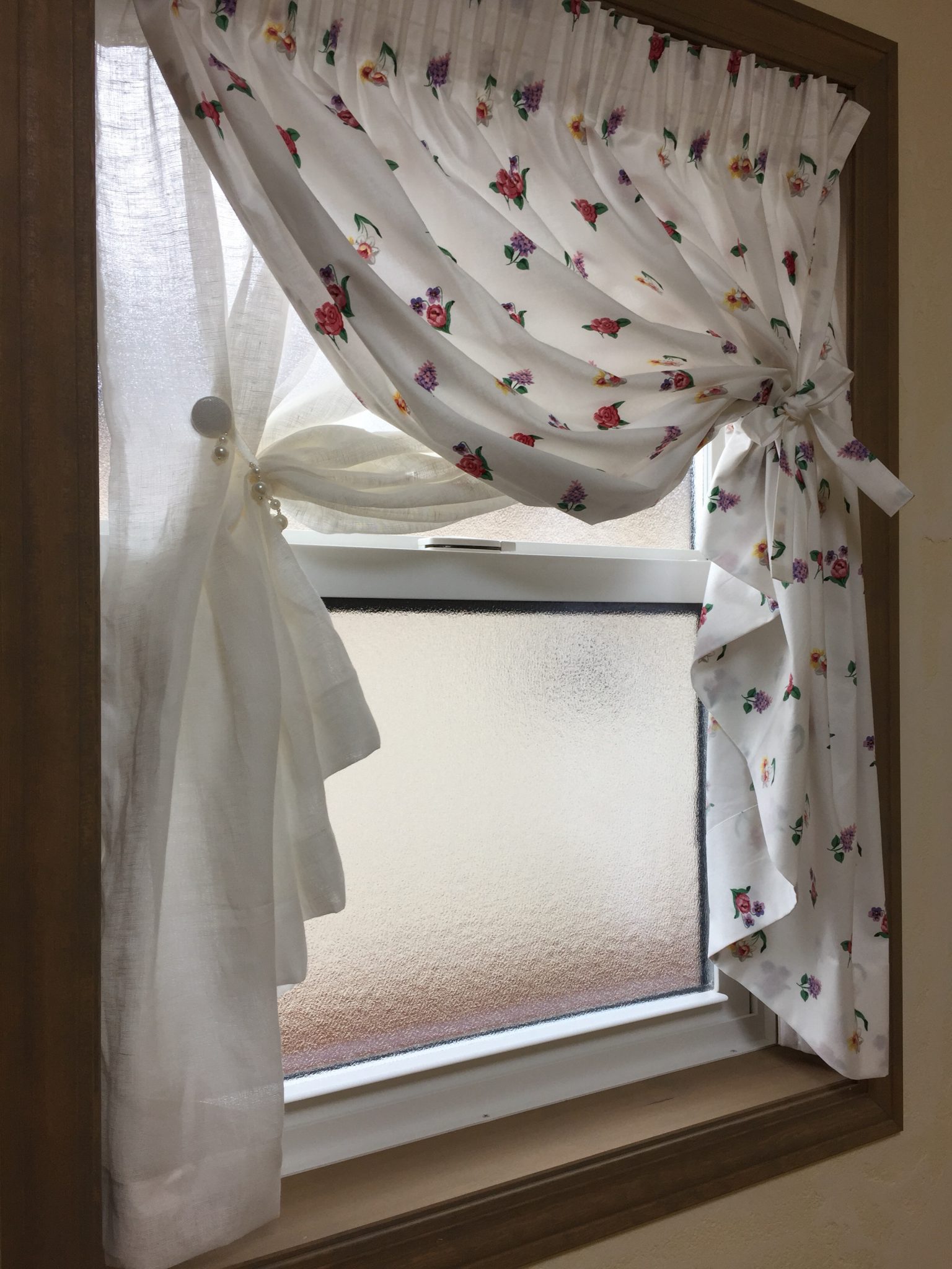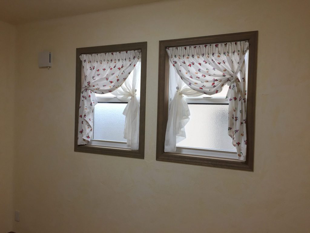 輸入住宅の小窓を可愛く仕上げるギャザースタイルのカーテン