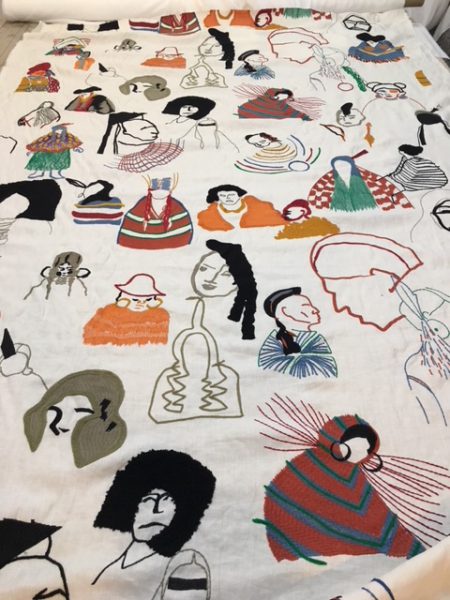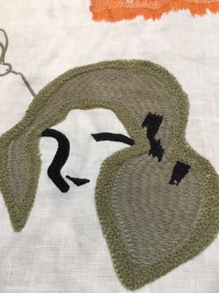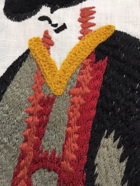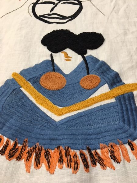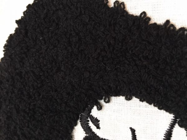こちらはアフロヘアーの青年の絵。リアルなアフロヘアーを刺繍で表現しています。とても面白い。