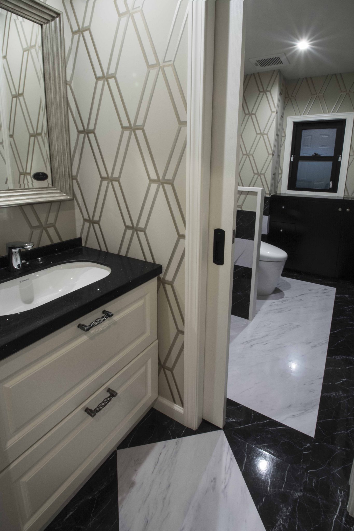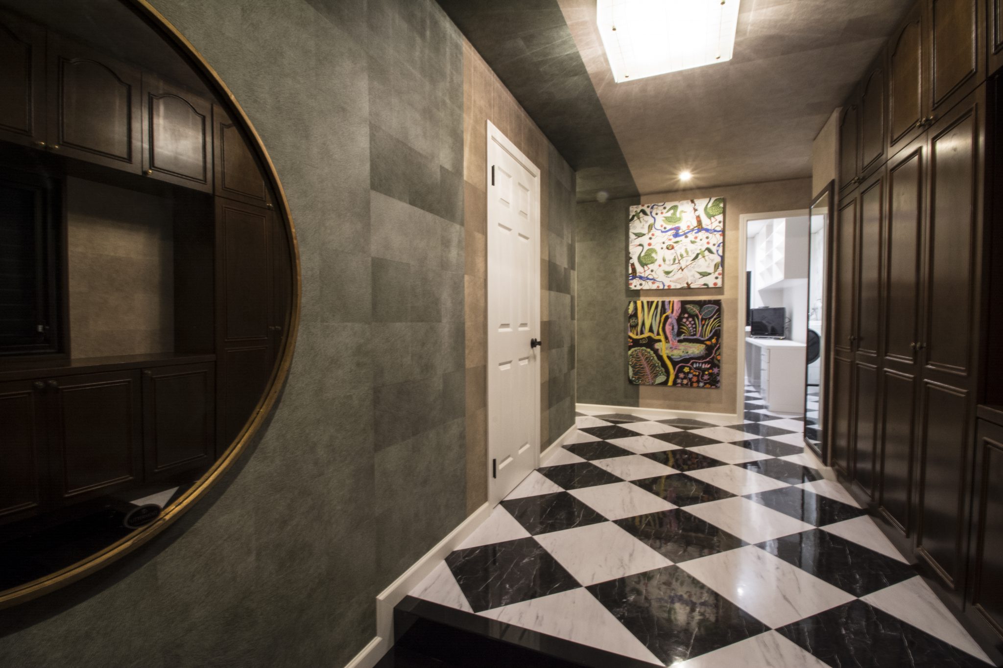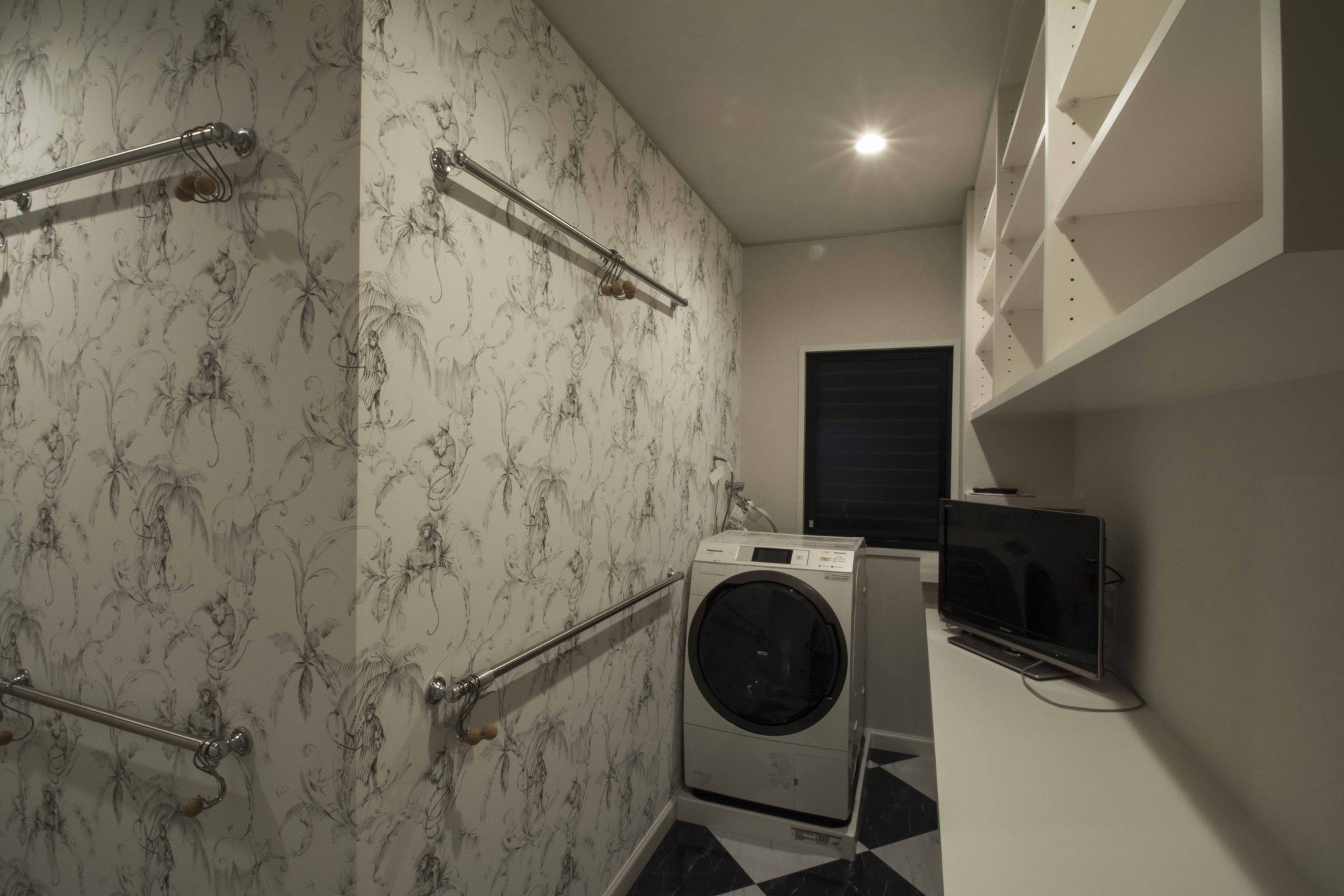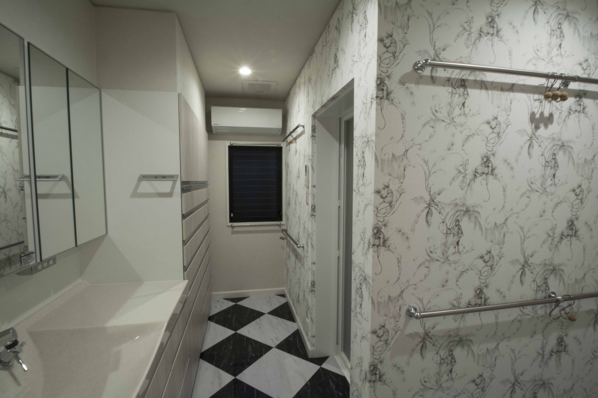 本当にお客様にはいろいろな提案を受けいれていただいたり、お客様からのヒントも多く勉強になりました。さらに新しい試みをさせていただいたりと感謝でいっぱいです。エントランスはこのような壁紙の張り方は実は初めてでずっとやりたいなと思っていましたが、これもこのお玄関がこの壁紙の貼り方を求めていたような気がします。