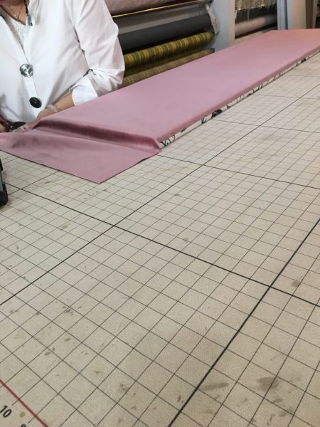 裏面はマットなベルベットのMercisのアムステルダムです。ポリエステル100% の こちらの生地は撥水加工の31色展開の生地なので割りとどの生地にも合う優れものでリサブレア で人気の生地になります。お値段もベルベットにしては¥5800/mとお手頃価格です。