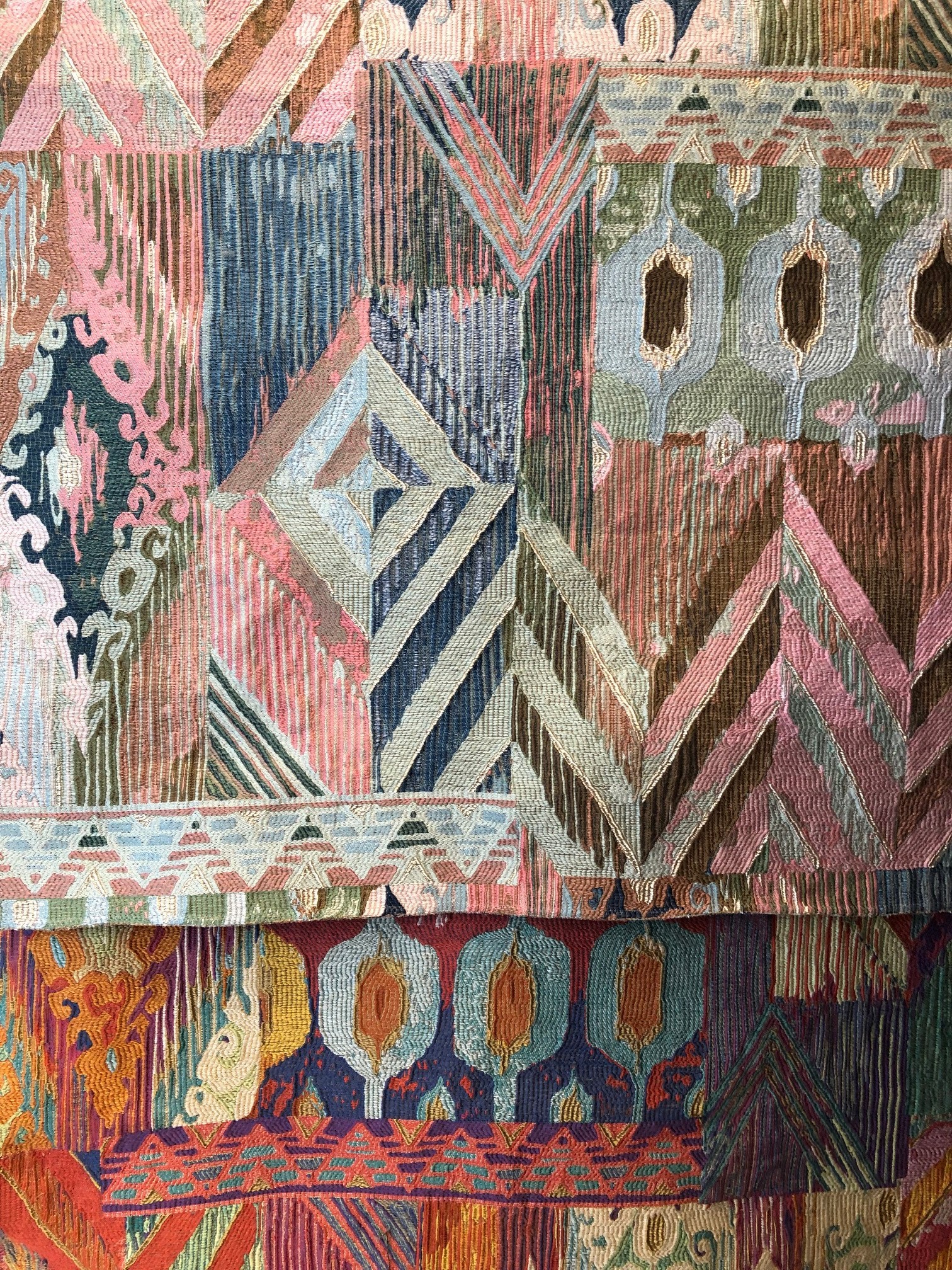 今回は主にリサブレアで最近導入した機械に使える無地の生地を主に探しました。デジタルプリントの生地も毎年少しずつ増えてきているようですが、ヨーローッパのメゾンの会社と比べるとデザイン的にうまくいっていないようで、どの会社もそれほど力を入れてないようでしたが、いろいろ参考になることを教えてもらえました。デジタルプリントも徐々に増えてきていることは確かですし、ハイムテキスタイルなどと違って椅子張りの会社ばかりで、織のテキスタイルが多いことも要因だと思いますが、織のファブリックに魅了されました。実際に生地の開発やデザインをしている人たちとお話しできるのはとてもいい機会です。