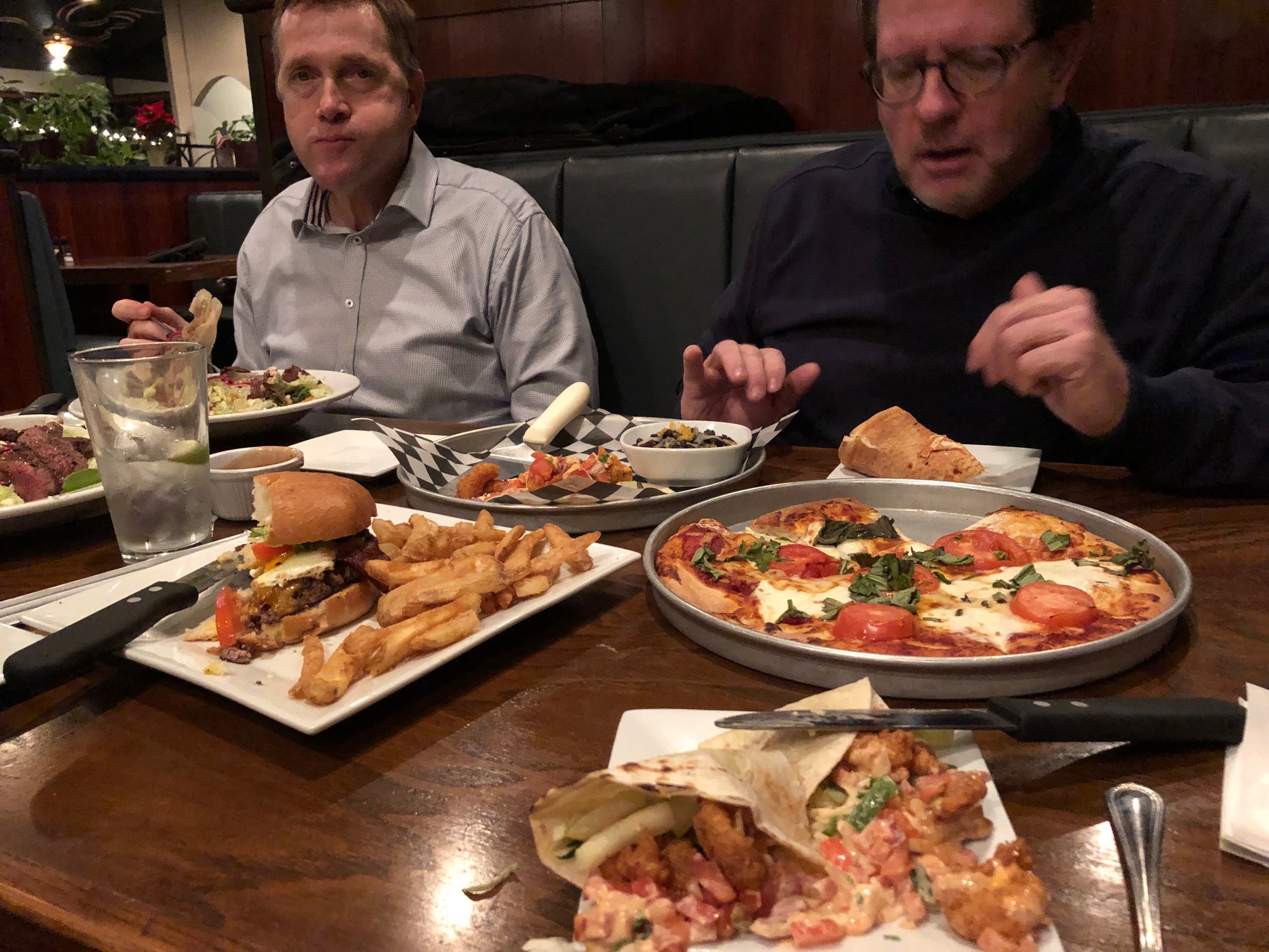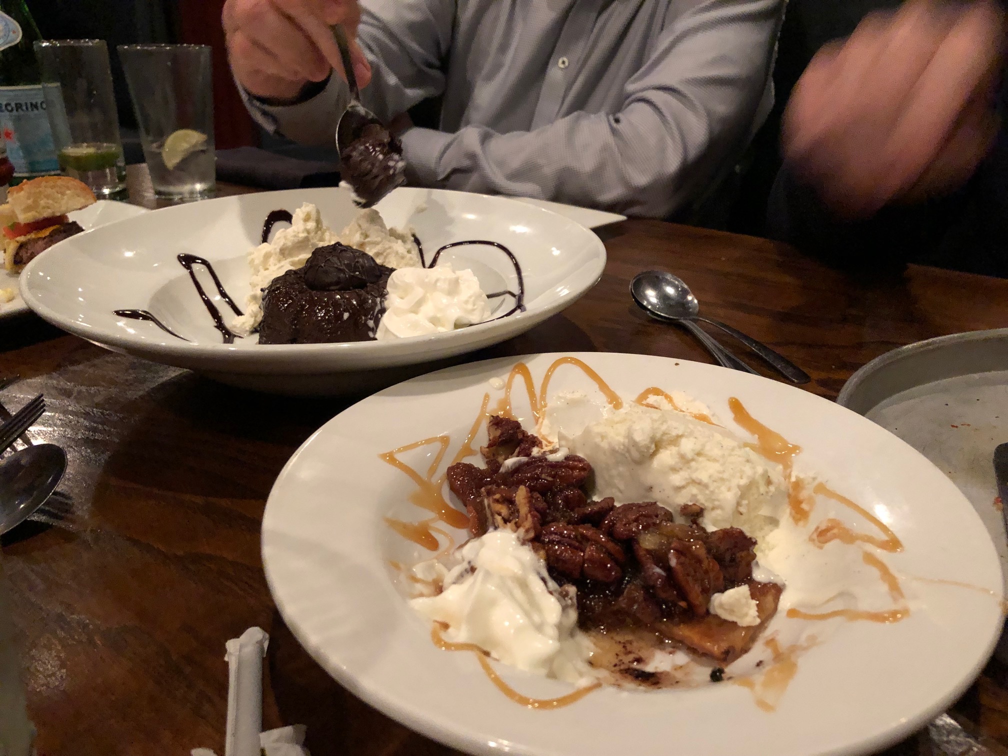 夜は久しぶりのアメリカンフードで、ハンバーガーは美味しいし、フレンチフライはおいしいし、おまけに大好きなタコスもあり、最後はこのラフな盛り付けが何とも言えずアメリカンのデザート、ピーカンパイとたっぷりの生クリームとアイスクリームは最高です。