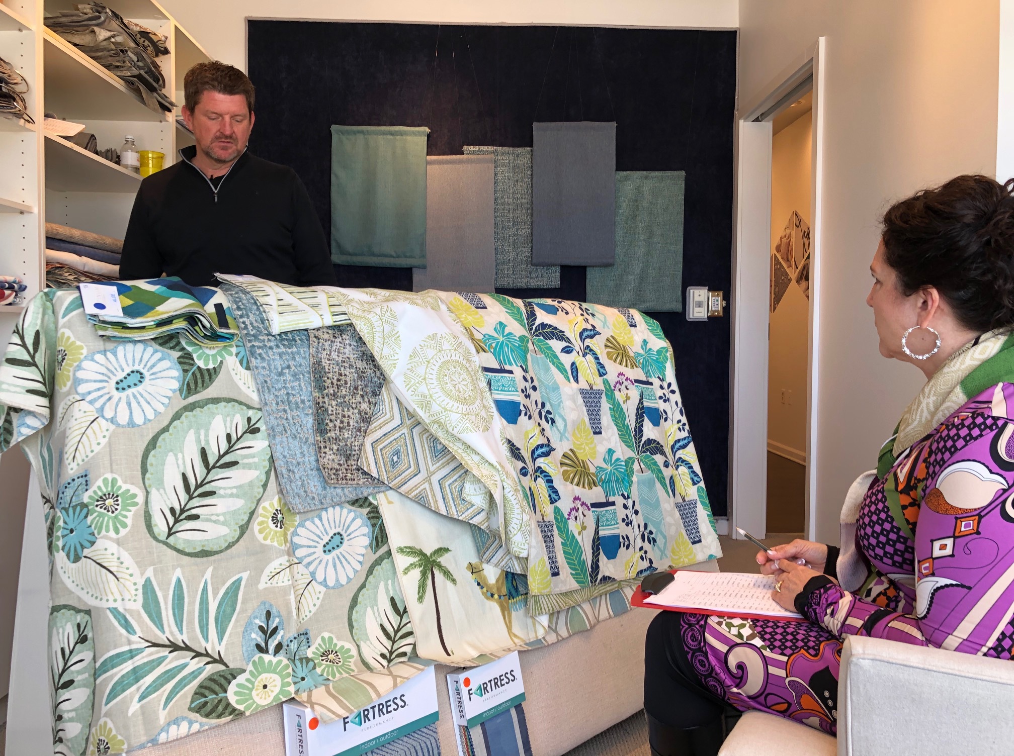 アポ制なので普通では入れないのですが、今回はIFDAのジャパンツアーで昨年日本に来られたポーラさんという方が大きなファブリックの卸をされており、毎年何百ロールも購入されるということで、各会社にアポを取られていたのでいっしょに連れて行ってもらったという次第です。一日10社以上のショールームをまわります。確かにアメリカは広大な土地なので、こうしてテキスタイルの会社が集まっているということは、年2回各地から集まるので、毎年新作を購入する顧客にとっては新作を見やすいということになります。どこのショールームでも大きな顧客なので大歓迎でお友達のように話されていたので、そのあたりを聞くと、この業界の人たちは何十年もかわらないみたいで、80歳以上の営業の方もおられ、とても楽しそうに生地の説明をされていました。