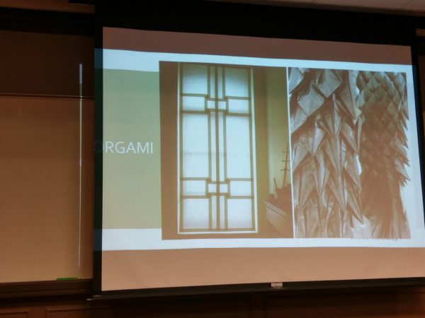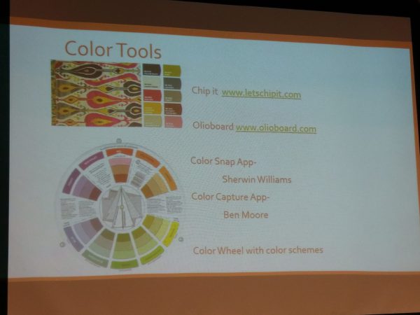 カーテンの吊るし方やウインドウ周辺のアクセサリ、デザインテクニックについて等ウインドウトリートメントについての内容から生地柄や配色についてのインテリアデザイン基礎、アメリカのインテリアにおける流行やフランス発でブームになりつつある日本的要素についてのお話しもあり終始楽しく拝聴しておりました。