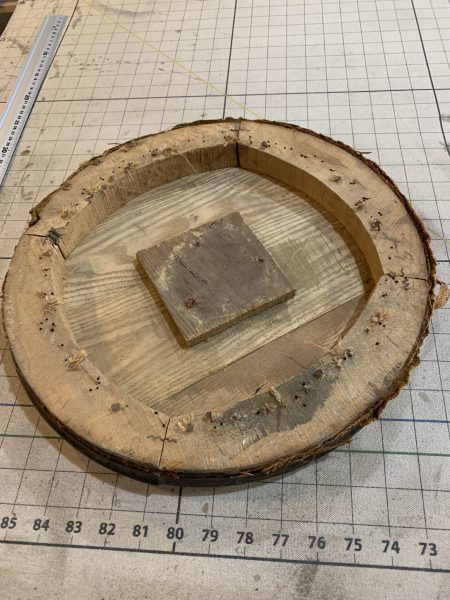 切り株のような木が座面の土台となっています。