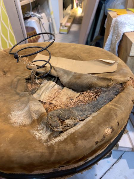 同じように藁を敷き詰めることはできませんので、バネも取り、クッション部分には新しくチップウレタンを使いました。