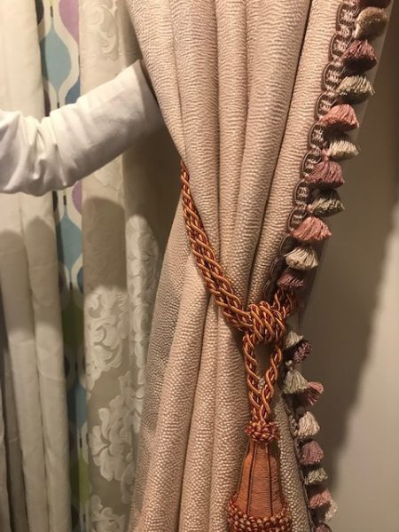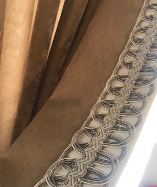 ↑カーテンの中央にフリンジを付けています。中央に付けることで、カーテンを閉めた時に中央にフリンジが見えシンプルなカーテンをぐんと引き立ててくれるんです!