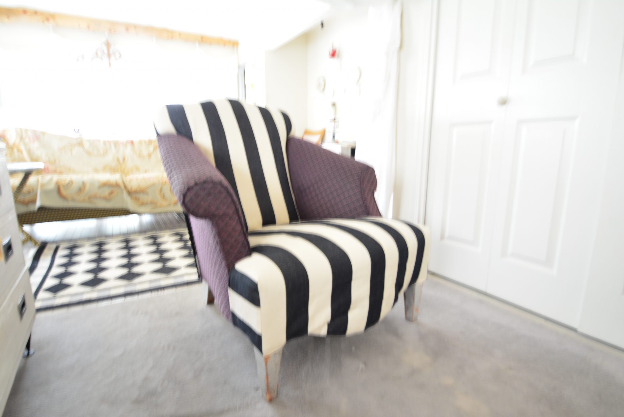 最近は椅子カバーのご依頼が多く、確かにペットを飼っていたり、頭の加齢臭がまともに移るなど、また椅子を捨てないで大事に使うということ、また生地が変わるだけでお部屋のイメージも変わることなど、椅子にはお手入れが必要です。いつも自宅は後回しになるのですが、もう25年ほど使っていたラウンジチェアで、しかもうちのプードルのすわり場所でもありテレビを見る主人の定位置でもある椅子の座面がとうとう破れてしまいました。うちのプードルがこの座面をごしごし掻いているのでよくもったなと思います。最近はずっと生地をかけていたのですがどうしても気になってリサブレアの縫製マネージャーの山崎に縫ってもらいました。私はもともとの生地が大好きだったことやあまりいたんでいないということ、しょっちゅう洗濯したいということも考えて、座面と背面だけのカバーにしました。下面はマジックテープで底にとめています。