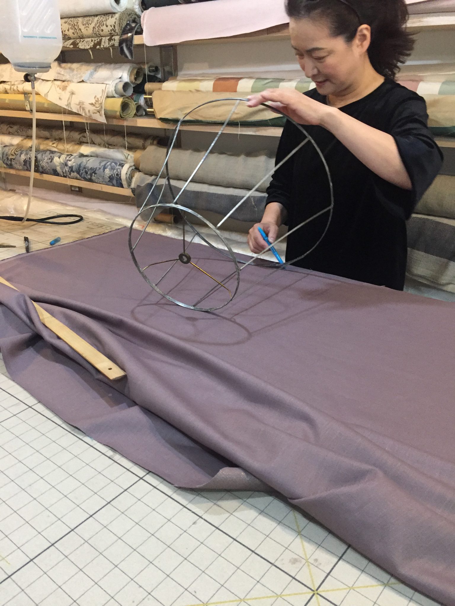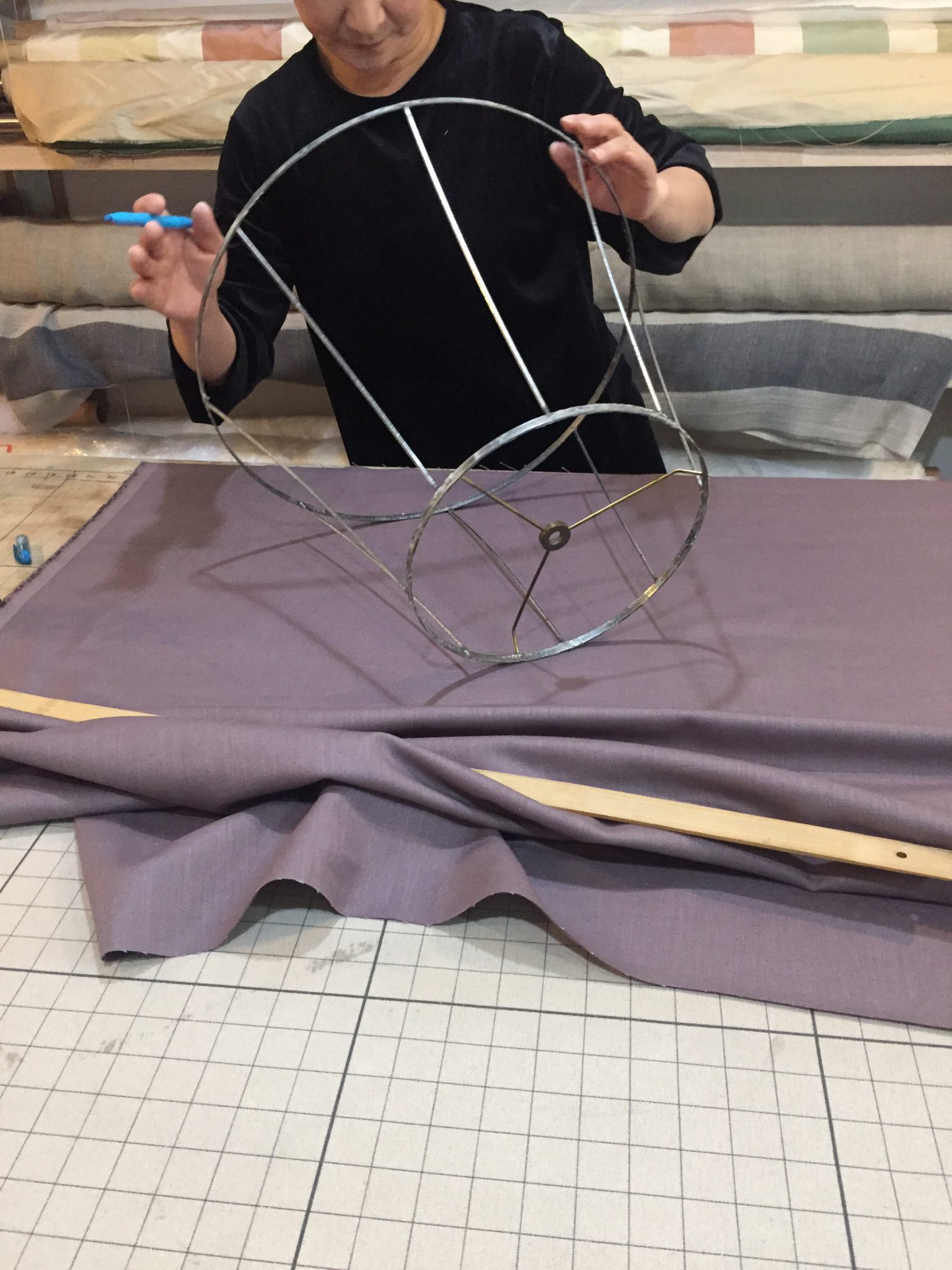 ランプシェードは縫製スタッフが型取りをして製作しております!(ランプシェードの張り替えは形状によって出来ない場合もございます)お部屋のインテリアに合わせて張り替えしたいなぁとお考え中の方はご相談くださいませ^ ^