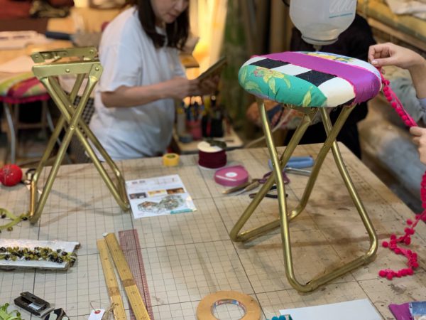 最後の装飾はお好みで、座面周囲にブレードやフリンジなどを装飾して完成となります。