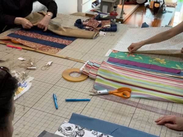 張替えの生地は一枚でも結構ですが、やはり皆さんパッチワークで好きな柄を組み合わせて考えるのが楽しいらしく、オンリーワンのデザインを決める大事な工程です。