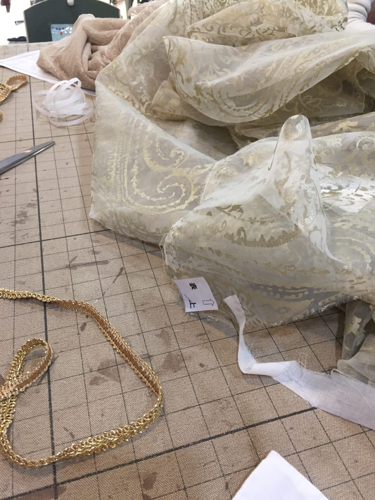 縫製スタッフいわくこちらのレース生地はとても繊細なので綺麗に縫い付けるのが難しいそうです。