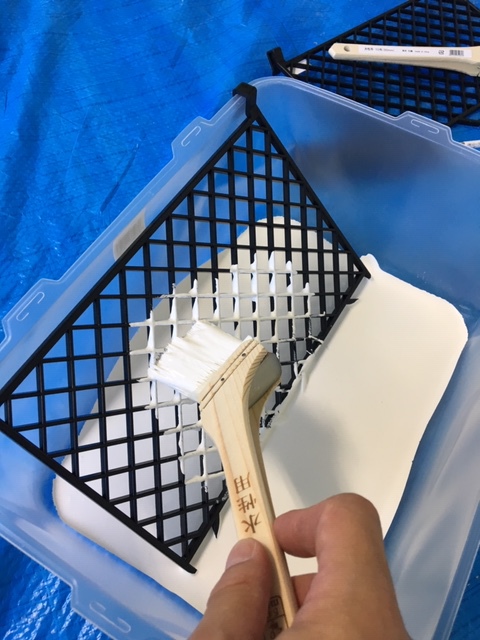 刷毛での作業は一旦終了。ここからはローラーで塗っていきます。