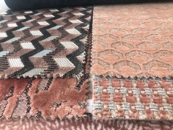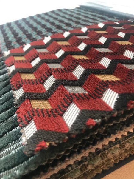 ジェーン・チャーチルは、刺繍された美しい花で有名ですが、今回ご紹介のサンプル帳は幾何学模様。装飾的な生地で少し厚みがありますので、ソファーの張替えやクッション・お茶箱などに最適です♡ 横から見たら立体的!生地が浮き上がっているようです。この色づかいが何とも言えず・・・ジェーン・チャーチルのカラーパレットは、豊かでエレガントです。