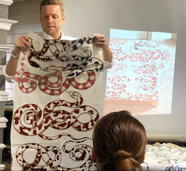 例えばこちらはコーディネーターの依頼で制作した個性的な蛇柄!要望があったため一般向けにも商品化したそうです。