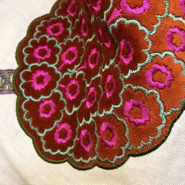 刺繍の美しさもさることながら、まずベースの生地の織りがすごく綺麗!と、弊社縫製担当の山崎さんも唸っていました…!