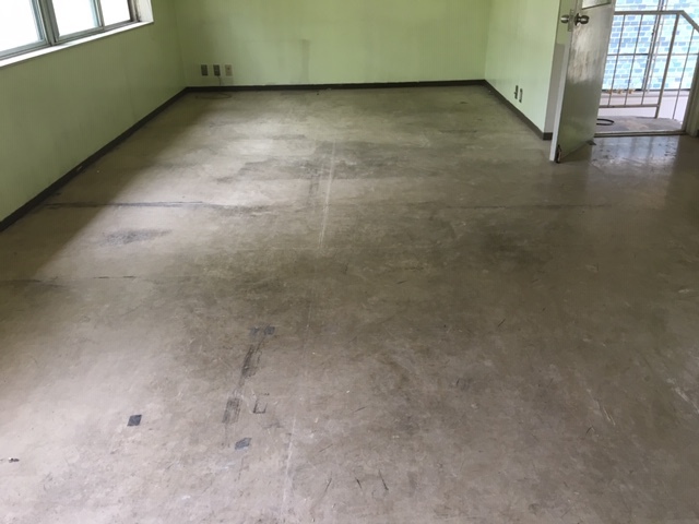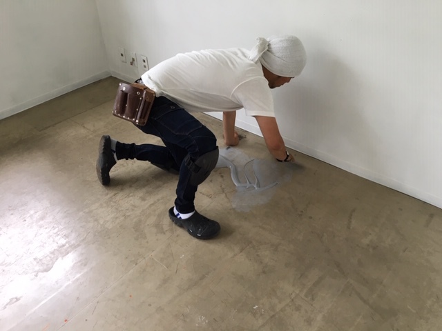古い床材を部分的に補修してから、新しい床材を貼ることになりました。