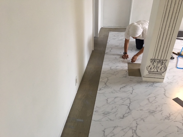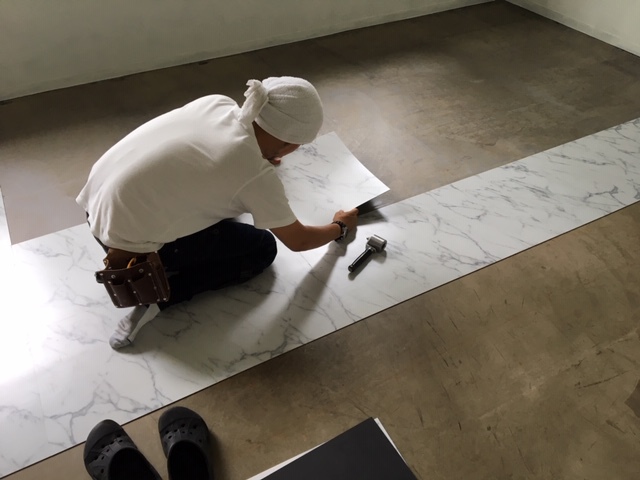 但し、古い床材が剥がれていたり浮いたりしている状況だったので、今回貼って頂く職人さんと相談の上