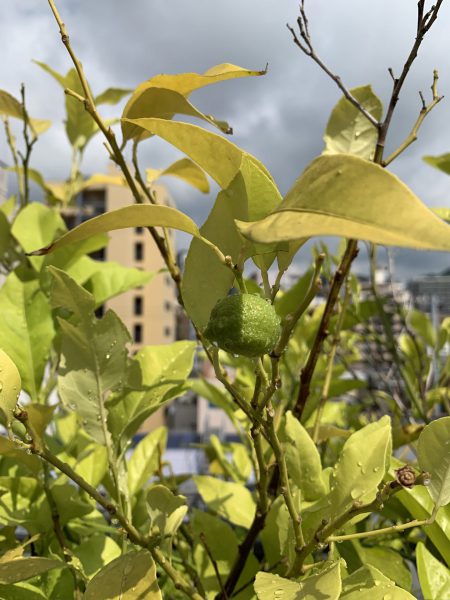 先月末くらいだったでしょうか、リサブレアの屋上にあるシンボルツリーでもあるレモンの木に漸く小さな実がなり始めました。