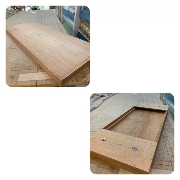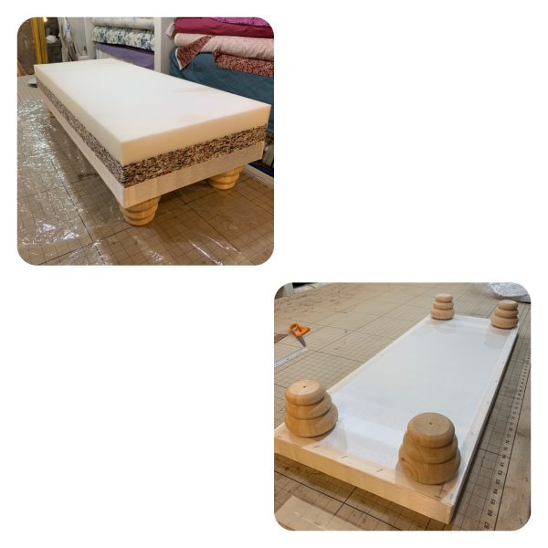 先ほどのウレタンを付けた木枠に脚を付けました。