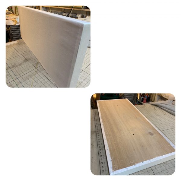 今回はマジックテープで取り外しができるカバータイプ(洗濯可)なので、生地は張り込まず被せて取り付けます。