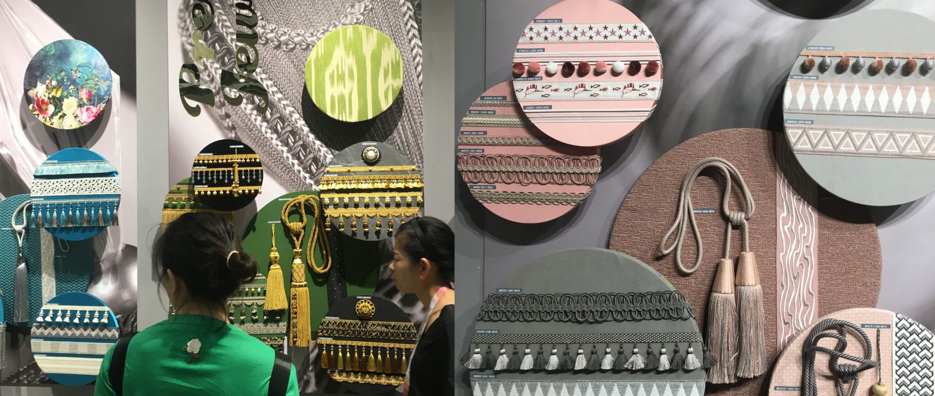 ブレードやタッセル類も種類が豊富で面白い!ブース内で話を聞くと、ヨーロッパやアメリカ、サウスアフリカ、中国のデザイナーを起用し、新しいコレクションを作っているとの事。ブレード類は、欧米メーカーの下請けとして中国で昔から製造していたので、他にも多くの製造メーカーが出展していましたが、この会社のブースはデザインの力で何とも魅力的なアイテムが揃っていました。