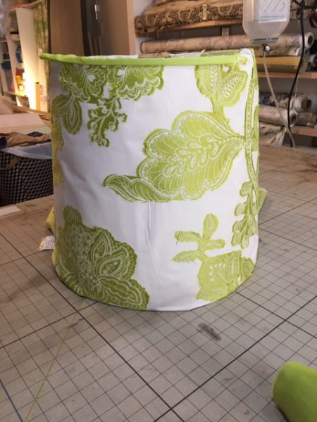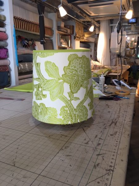 こちらのランプシェードはかなり大きく生地の選択もなかなか難しい物になりますが