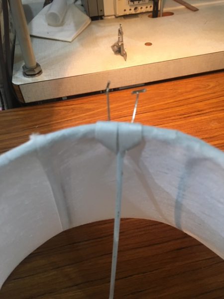 骨組みを避けるため本体の生地を切り込むのですがこうしてテープで美しくない所をカバーします。