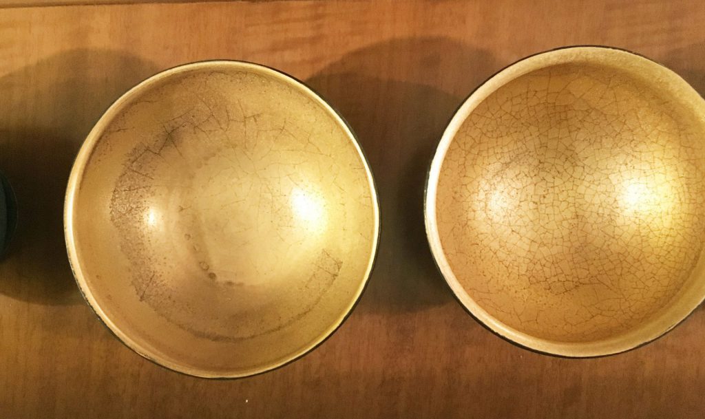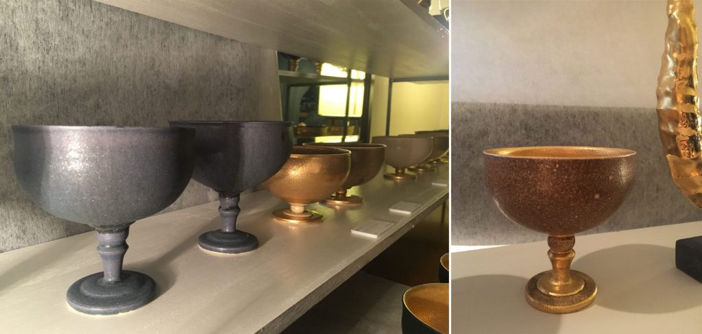 お月さまのようなこの陶器。様々な表情のゴールド!