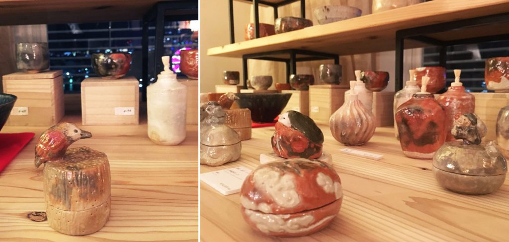 私たちは昨年アートマルシェで出会った津田 友子さんの作品に一目惚れし、リサブレアにお越し頂き、アメリカからのゲストにお茶道具としての茶碗についてご説明頂きました。今年はレセプションにお招き頂き、ゆっくりと作品を見せて頂きました。