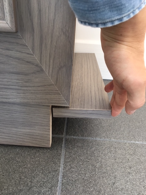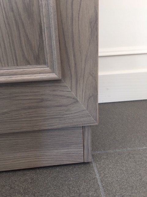 細かい部分ですが、巾木をかわして、壁面にピタリと設置できる様に巾木のサイズで切り欠きました。