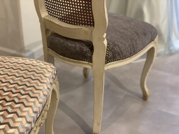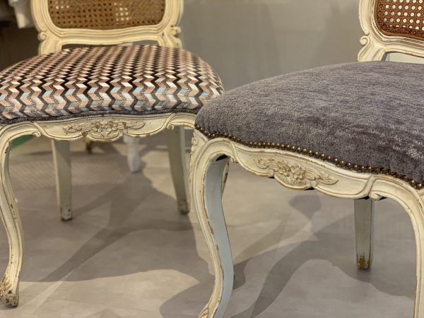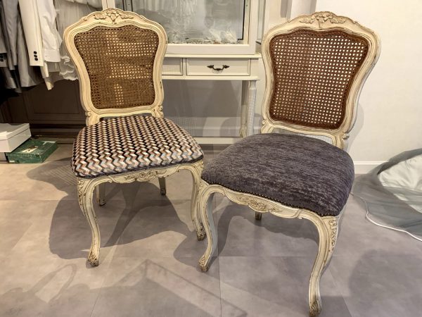 アクセントとなるような生地で4脚中、2脚ずつそれぞれ張り替えさせて頂きました。