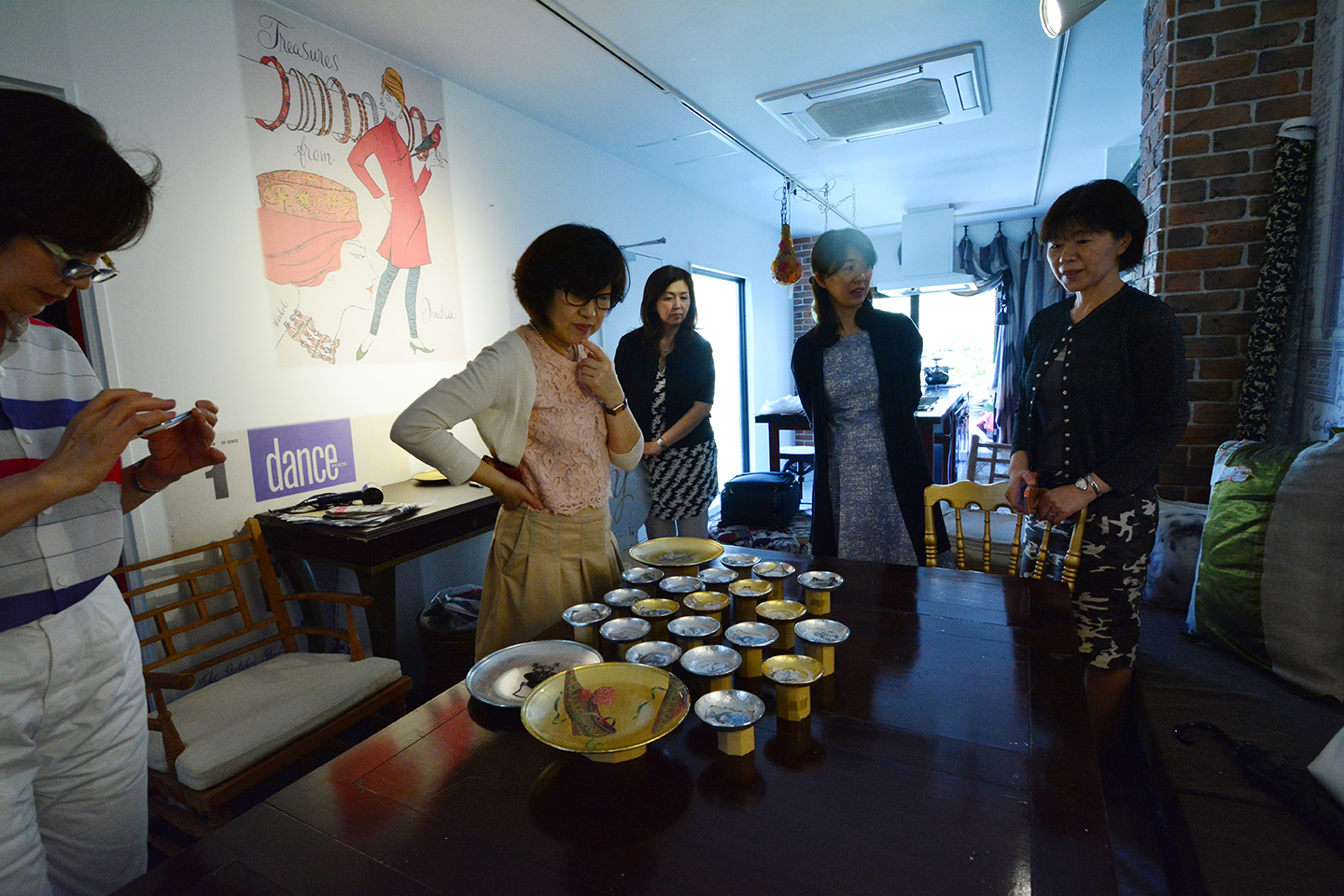参加した方々と講師のコラボレーションで常に進化しているこのワークショップでは、次々とアイデアが生まれてきます。「お客様にちょっとしたお茶菓子を出すお皿が欲しい」と提案したD様。D様は、ご自宅でインテリアやテーブルコーディネートのレッスンをしているので、お客様が多いそうです。今回のワークショップで満足いく素敵な作品達を制作されてました。