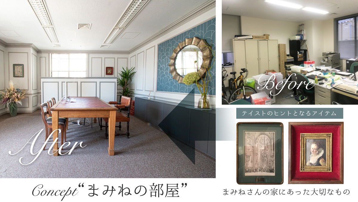 今回の会場となるアンドブレイン・山崎麻峰さんのオフィス。右は入居前の某協会事務所の時の写真。デザインプロセスもご本人交えてお話します!