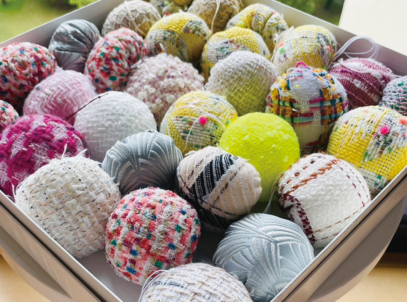 香袋はリサブレアのカラフルな輸入生地や、浅木先生の大好きなイギリス・リントン社の生地が使われています。リントン社はココシャネルの愛したツイード生地のメーカーとして、ファブリック好きだけでなくファッション好きな方にも知られていますね。