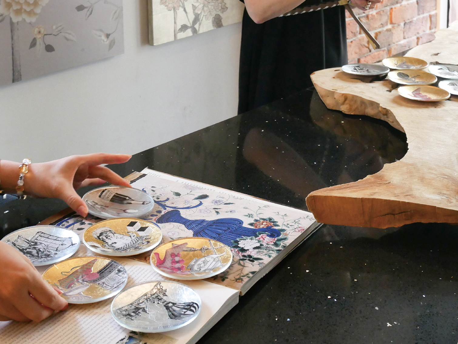 日常でも使える銀箔金箔を使ったモダンでクールなディクパージュのお皿づくりのワークショップ。