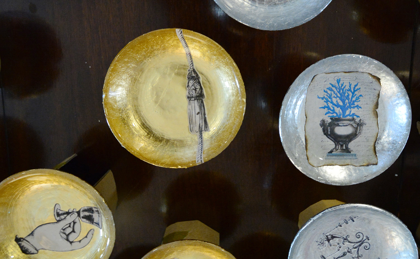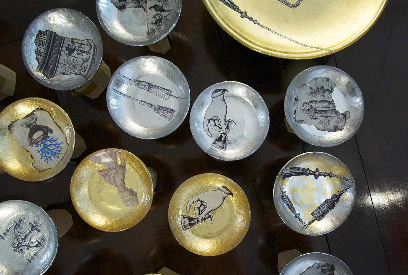 日常でも使える銀箔金箔を使ったモダンでクールなディクパージュのお皿づくりのワークショップ。ガラスのお皿の裏側から泊やモチーフを貼り、ニスでコーティングしますので、通常通り食事用としてご使用頂けます。(食洗機でのご使用はおやめください)
