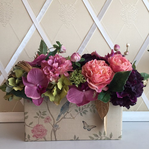 今回は特別に、リサブレアとのコラボ企画として、リサブレア・オリジナル・シノア生地に合わせてアレンジをデザインして頂きました。フレジエさんの手にかかると、フラワーの色味や質感を使い、私たちの生地の魅力を引き出してくれます!