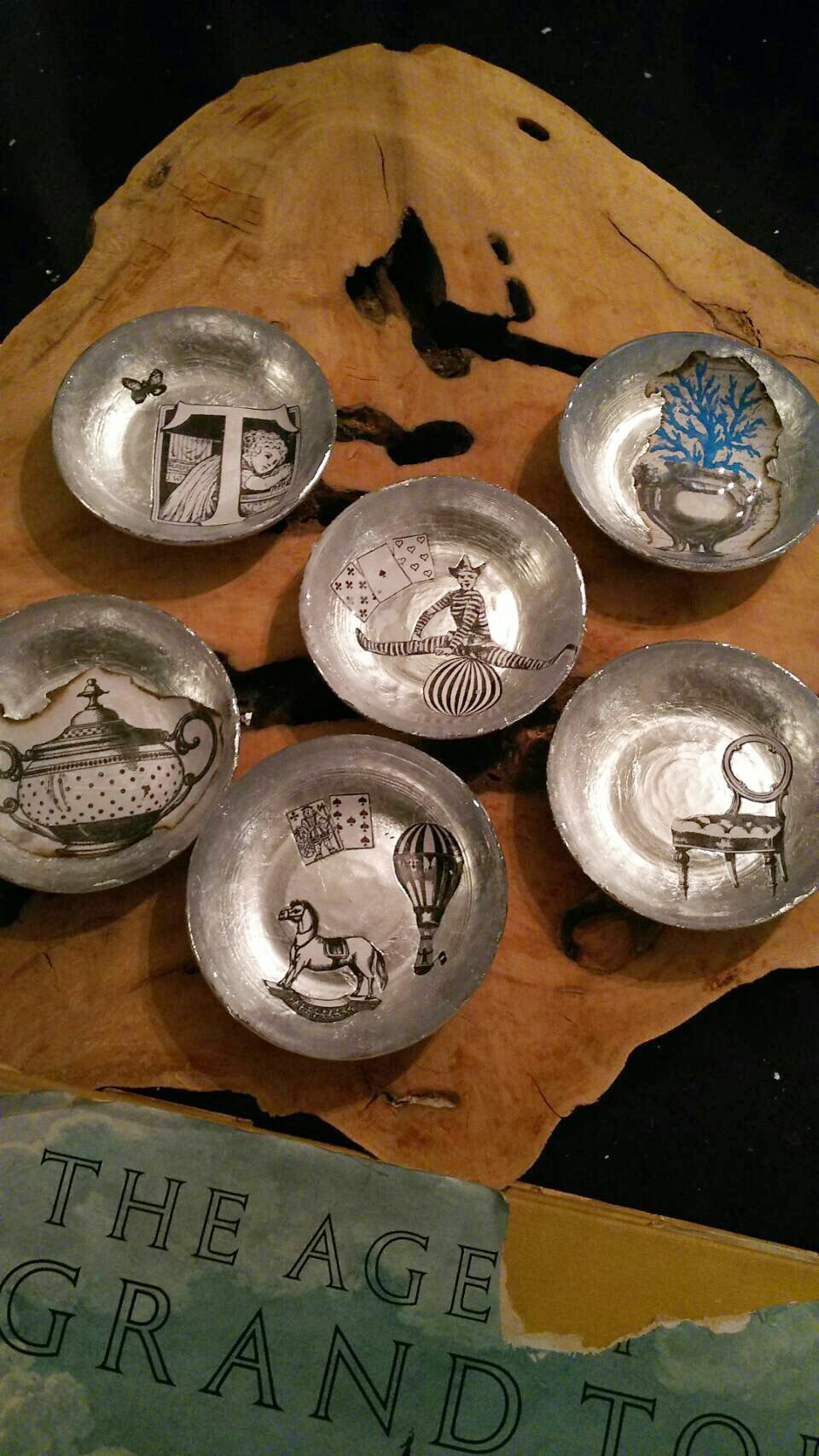 日常でも使える銀箔金箔を使ったモダンでクールなディクパージュのお皿づくりのワークショップ。ガラスのお皿の裏側から泊やモチーフを貼り、ニスでコーティングしますので、通常通り食事用としてご使用頂けます。(食洗機でのご使用はおやめください)